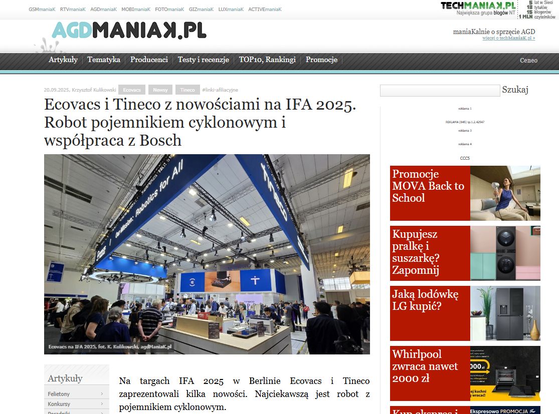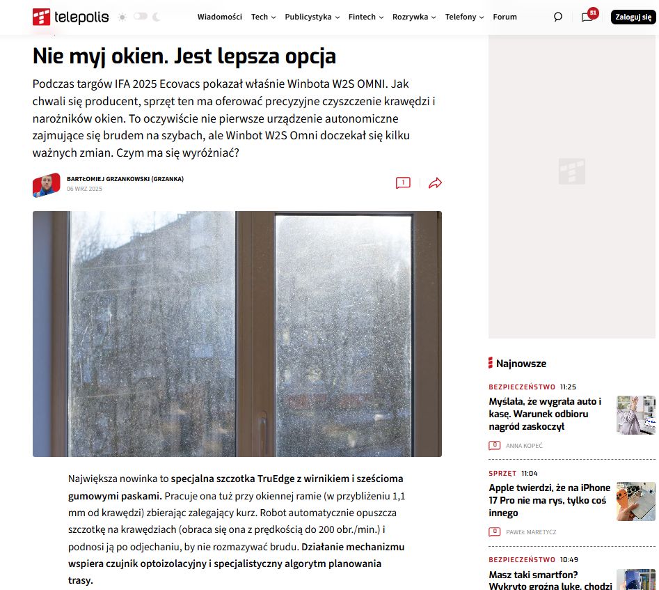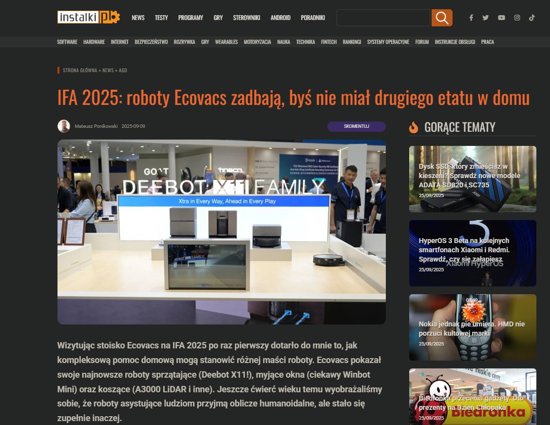 Podobny plan mieliśmy wobec producenta robotów sprzątających, szturmem zdobywającego kolejne lokalne rynki – Ecovacs. W tym przypadku promowaliśmy dwa najnowsze modele, które miały światową premierę w pierwszej połowie września 2025 r. na IFA właśnie – robota sprzątająco-mopującego Deebot X11 i do mycia okien Winbot W2S. Poszliśmy tym samym PR-owym tropem jak w przypadku Hamy, zapraszając na stoisko dziennikarzy oraz korzystając z pomocy i merytorycznego wsparcia przedstawicieli z siedziby w Chinach, a także portugalskiego oddziału. Wszystkie rozmowy siłą rzeczy przebiegały po angielsku.