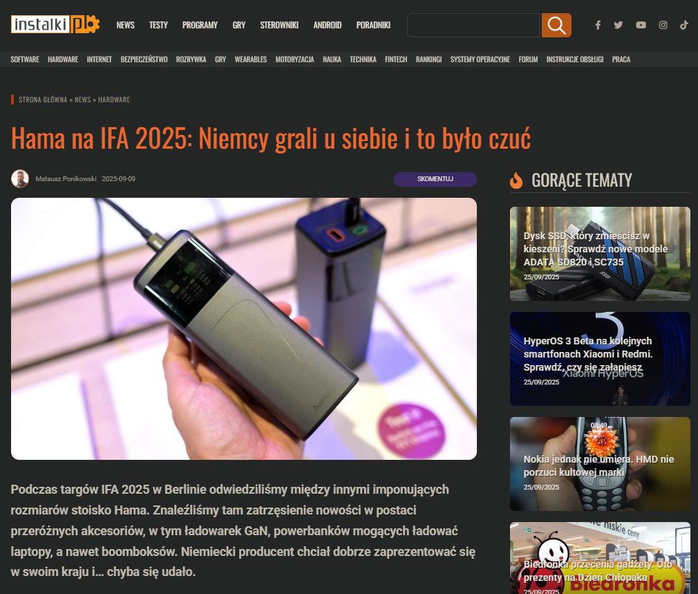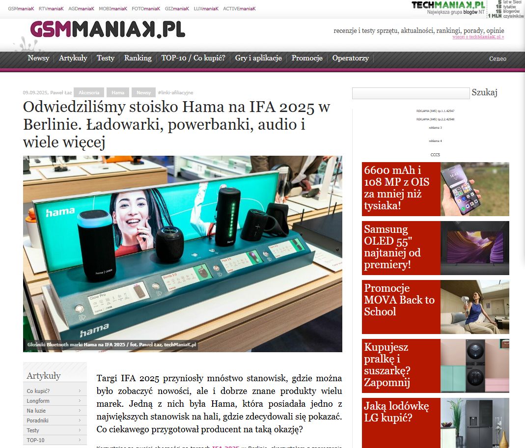 Na cztery tygodnie przed startem IFA przygotowaliśmy listę dziennikarzy technologicznych, planujących pojawić się na targach. Zebraliśmy komplet kluczowych informacji o premierach Hama na rynek polski: smart ringi, składane ładowarki GaN i ze zwijanym kablem, opaski typu payband, ładowarki indukcyjne, supermocne powerbanki ładujące z mocą do 200 W, słuchawki nauszne Bluetooth z funkcjami AI czy nieżółknące etui do smartfonów z ochroną ekranu. Następnie swoim zwyczajem, bez chwili zwłoki, przeszliśmy do ofensywy: maile, telefony i konsekwentna komunikacja o tym, co czeka na stoisku Hama — łącznie z atrakcjami — oraz umawianie konkretnych dat i godzin na wizyty przedstawicieli redakcji.